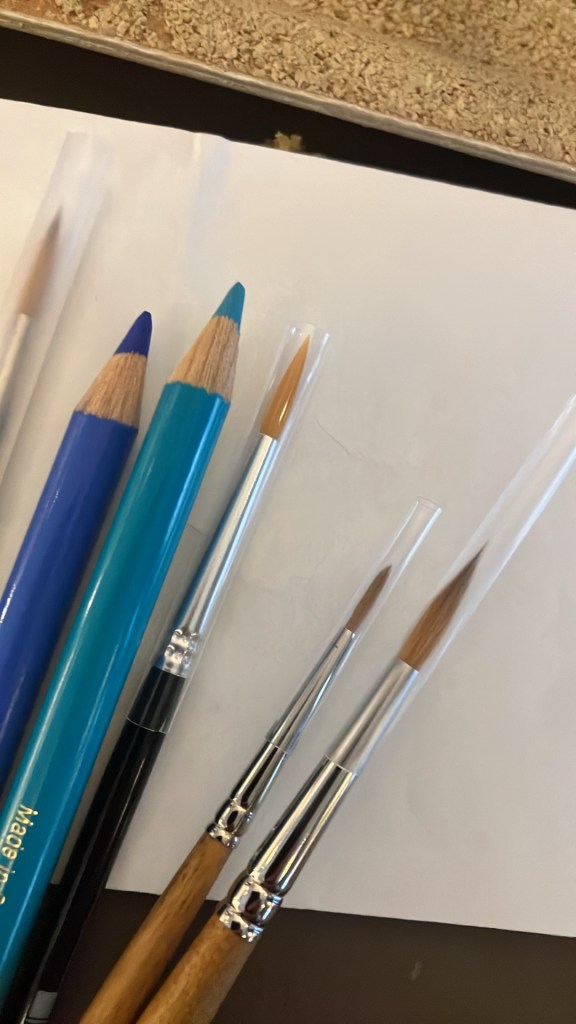 I veckan var jag inne i en av mina favoritbutiker och köpte några Polychromaspennor. Jag fick också med mig lite penslar. Målet, syftet eller anledningen till inköpet är inte aktivt välplanerat men oj så tillfredställande.